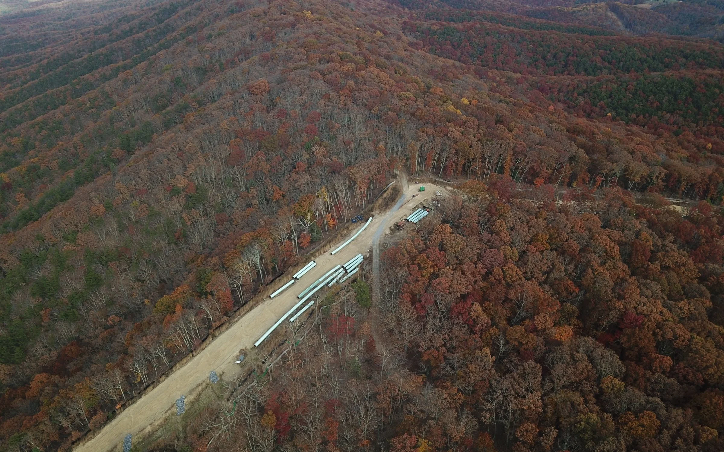 Mountain Valley Pipeline construction across a steep slope in southwest Virginia.